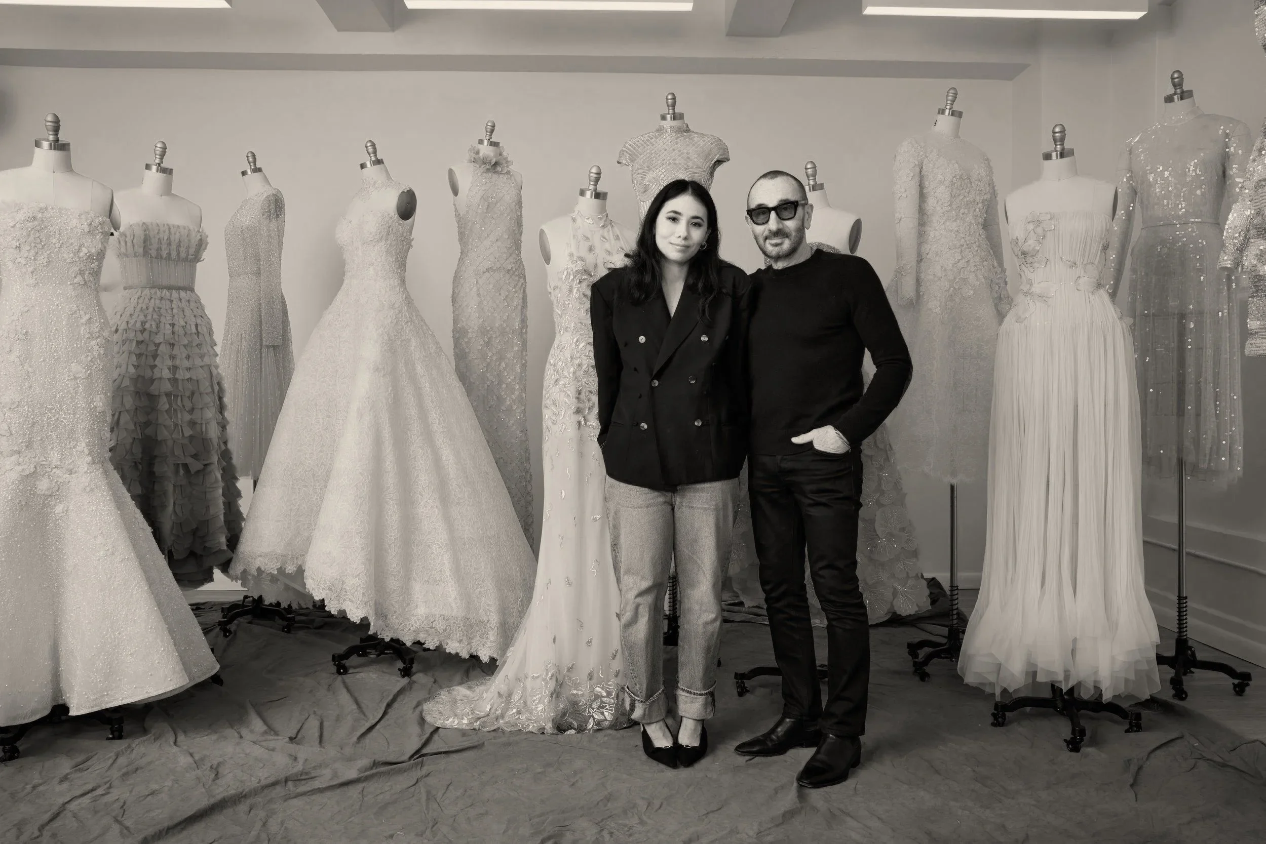 Co-founders Gilles Mendel and his daughter, Chloé Mendel Corgan, are renowned figures in the fashion world with over three decades of experience in haute couture and luxury ready-to-wear; Mendel is revered for his unparalleled craftsmanship and gift for creating exquisite garments.