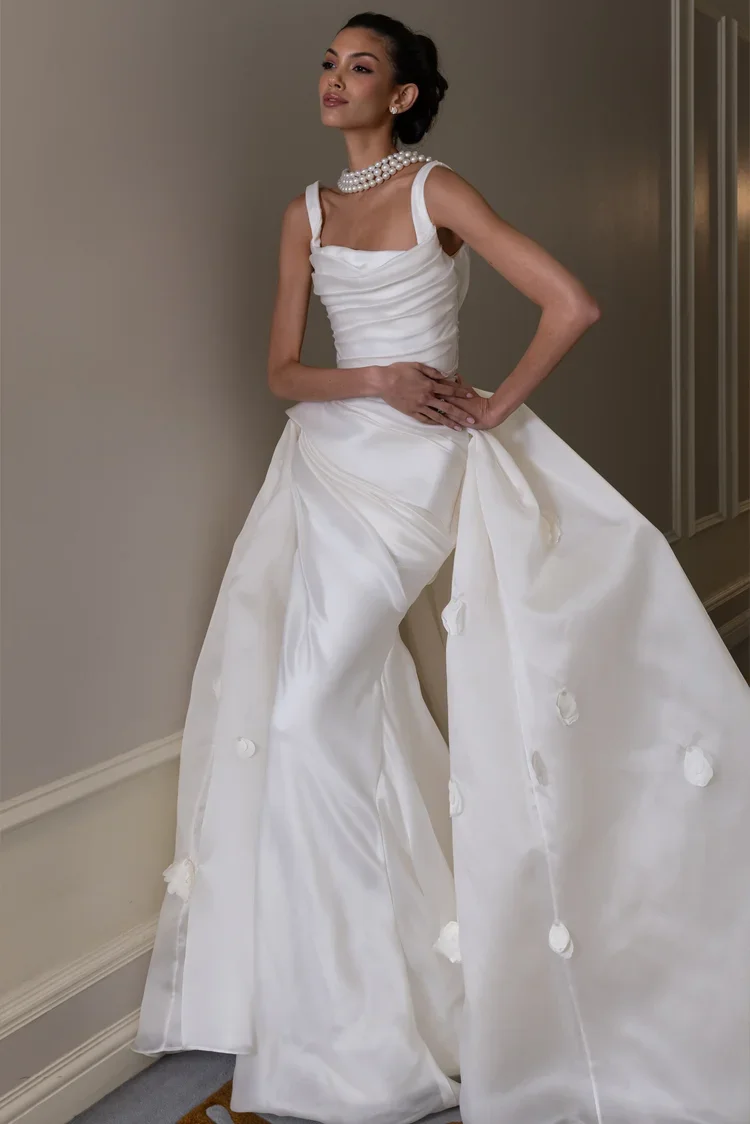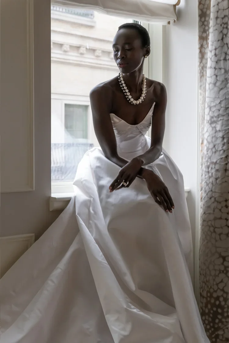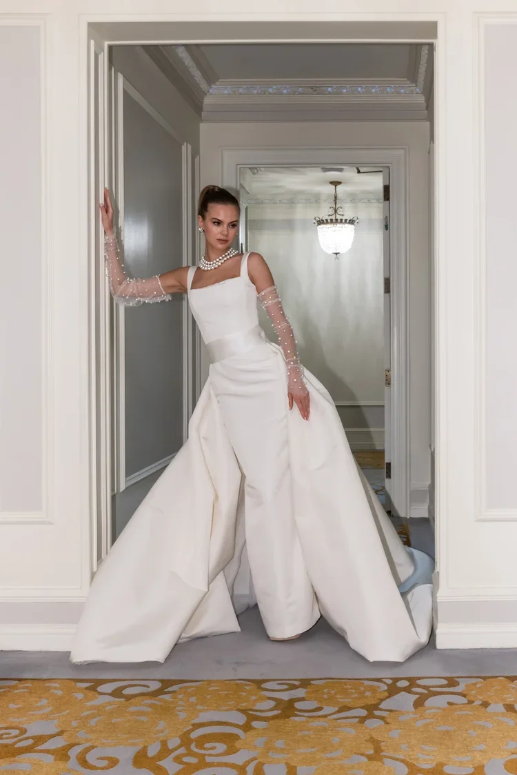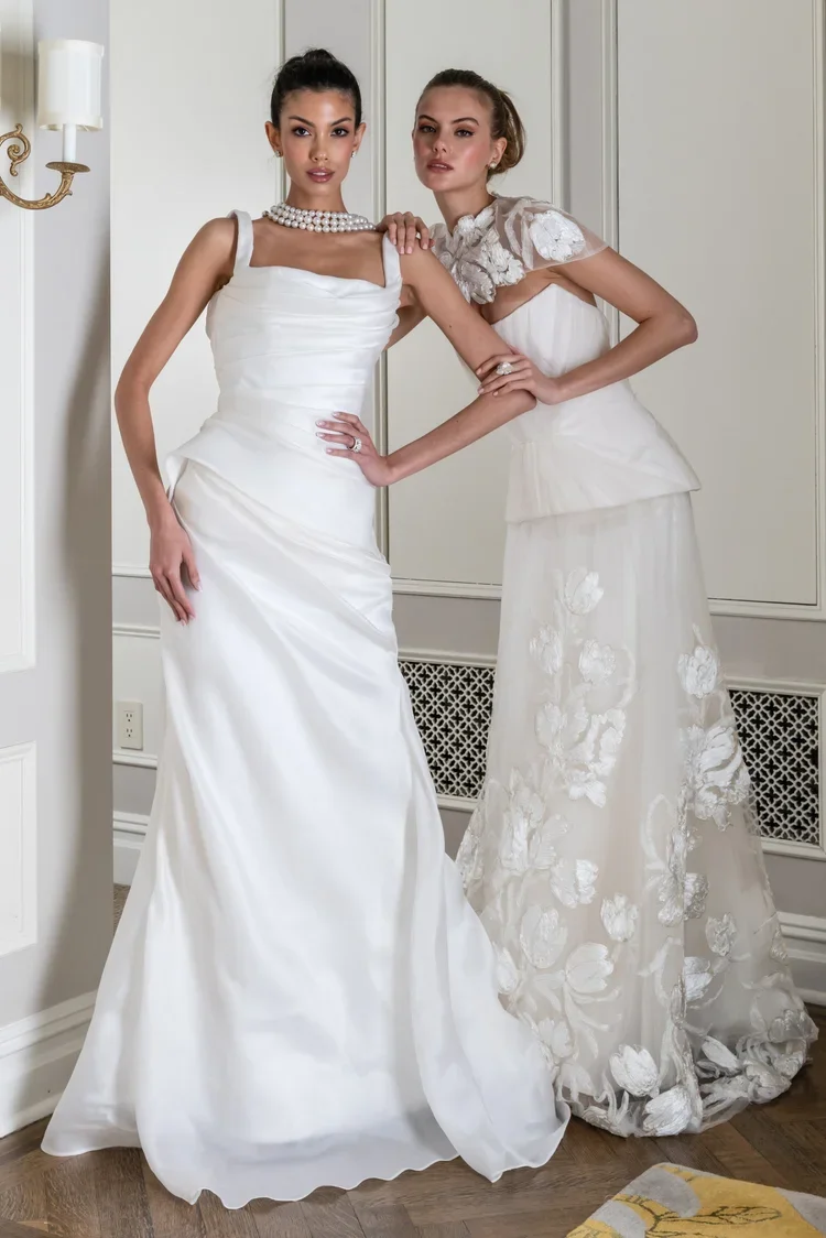 “Our dresses symbolize a timeless connection, reminiscent of old churches, adorned with vintage headpieces.”